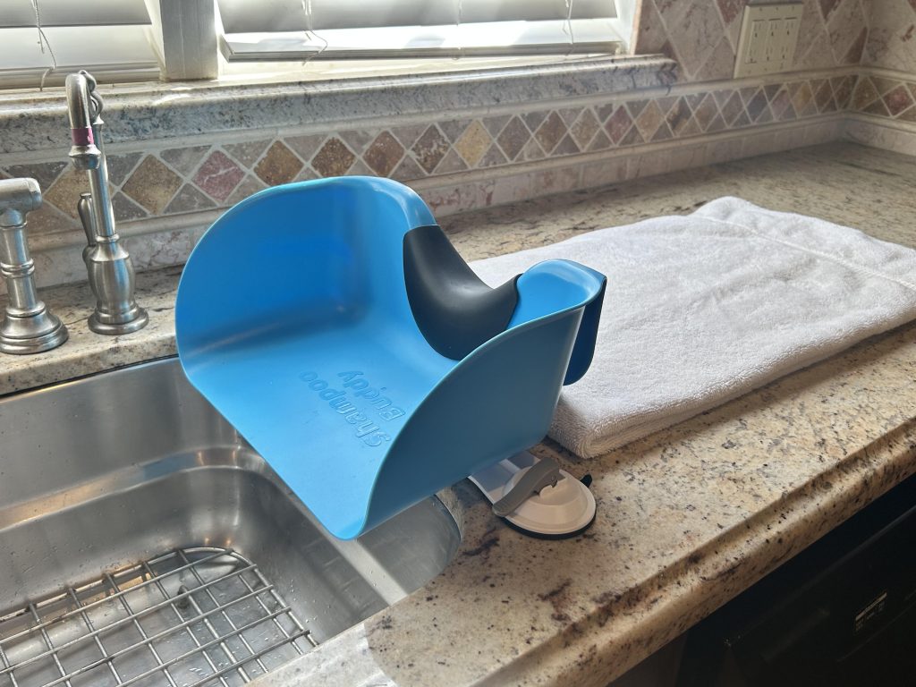 Introducing the Shampoo Buddy – a product that lets you turn your kitchen sink into a salon sink. It works on your bathtub too! Keep soap and water out of little eyes and the stress out of hair washing. Great for all ages!